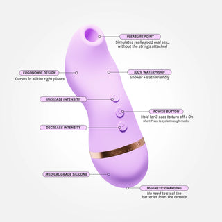 Wave hello to pleasure. Empress Tidal is a clitoral stimulator with brand new Pleasure Wave™ technology to help you explore the depths of your pleasure. Empress Tidal features a powerful motor that delivers intense sensations, and when used at full power, you may notice a gentle warming effect. A new generation of our bestseller + fan favourite, the Empress Tidal delivers rhythmic ripples of pleasure in the form of low frequency pulsations to stimulate deep within the clitoral network.