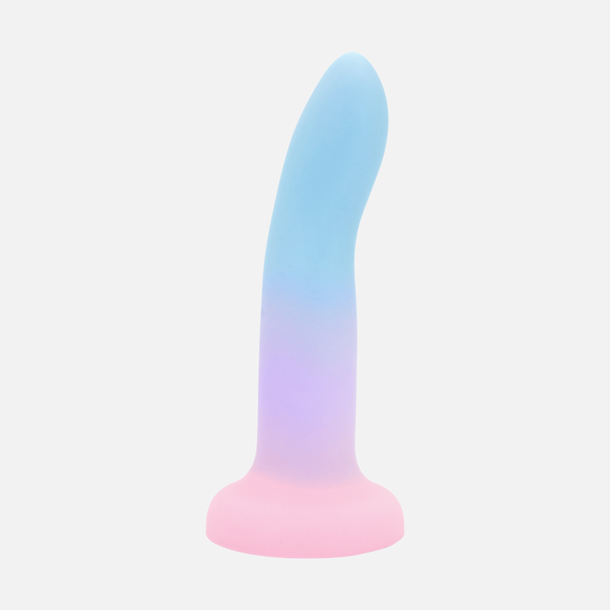 SOOS is a dildo that blends stormy blue through romantic pink and into a soft, peachy glow.
